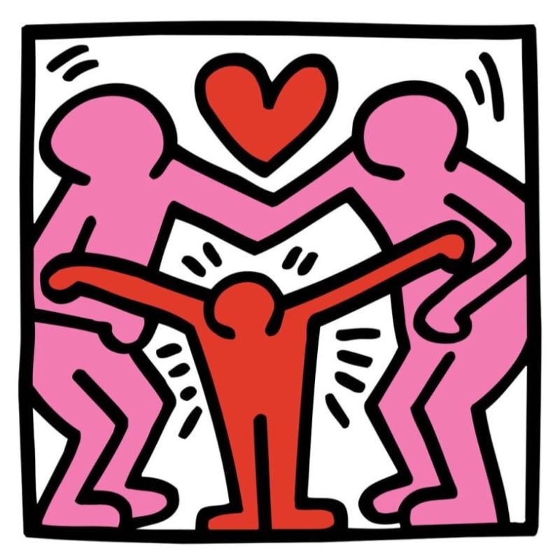Keith Haring, born in 1958 in Reading, Pennsylvania, was a groundbreaking American artist and activist whose bold, energetic line drawings became symbols of the 1980s New York art scene. After studying at the School of Visual Arts (SVA) in New York, Haring gained early recognition by creating chalk drawings in subway stations, turning public spaces into accessible galleries.